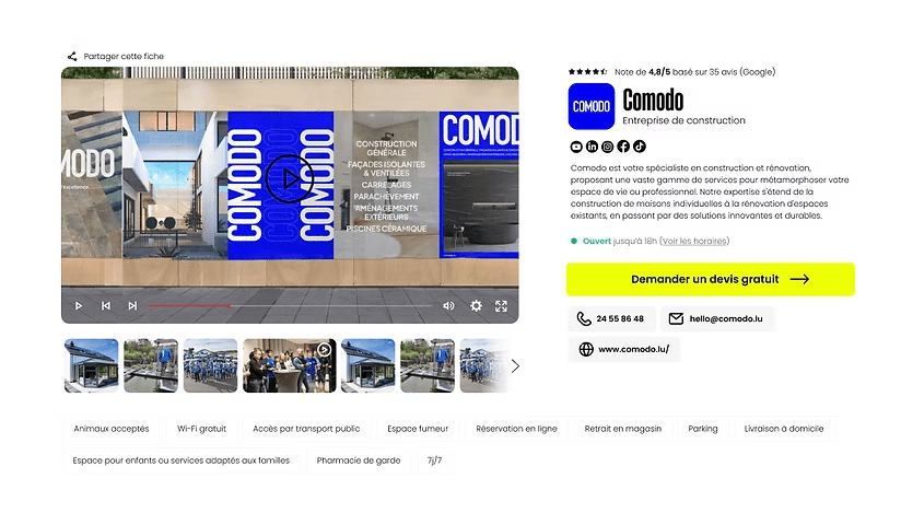 Oui, à tout moment. Vous pouvez modifier vos horaires, ajouter un service, un contact, une promo, etc. Votre fiche reste vivante et à jour, sans surcoût ni délai.
