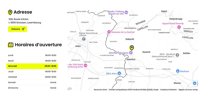 Grâce à une carte interactive et des horaires clairs, vos clients peuvent vous localiser en un clic et planifier leur visite facilement.